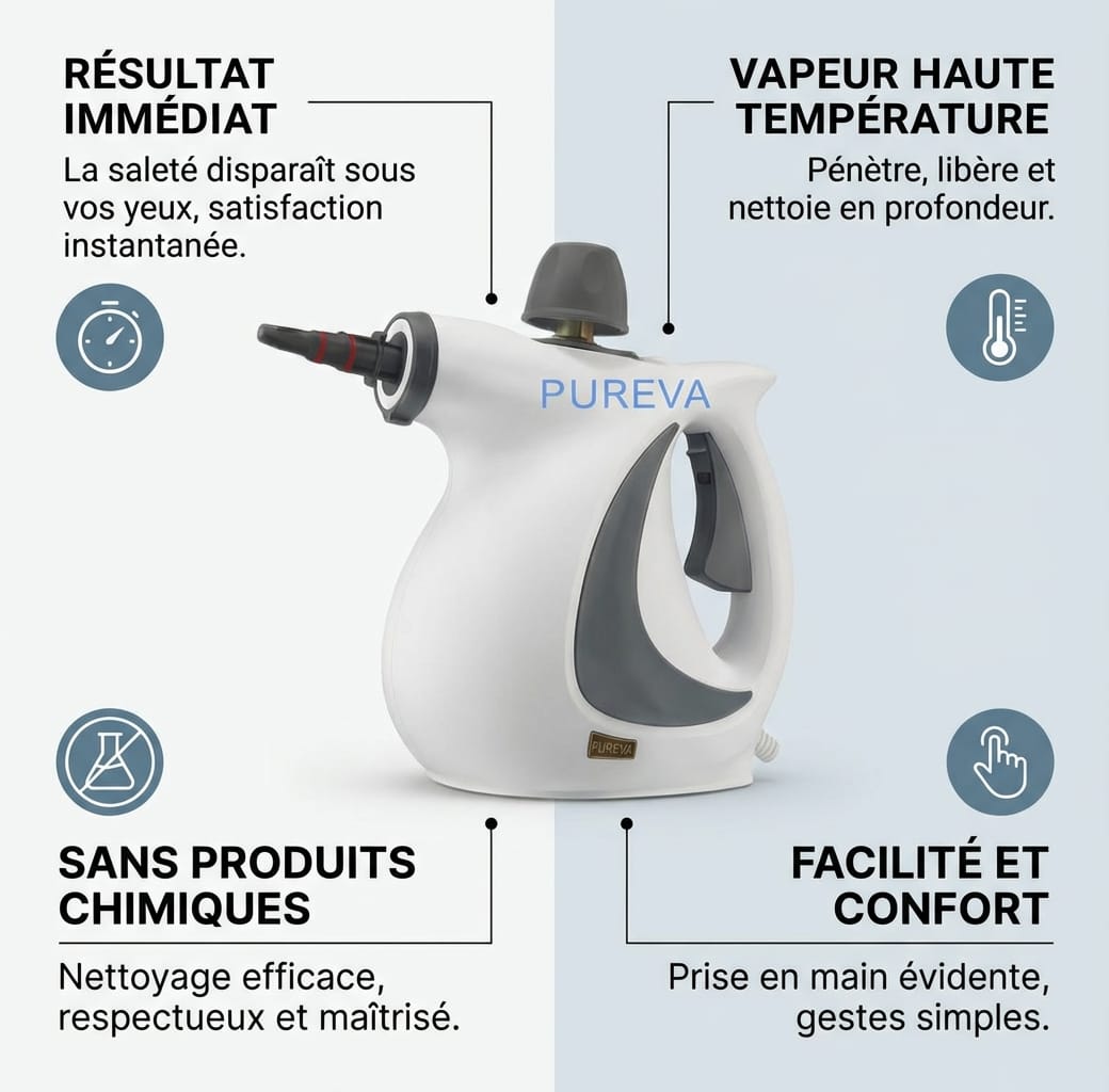 Nous sommes convaincus que vous allez adorer le Steam Cleaner PUREVA.